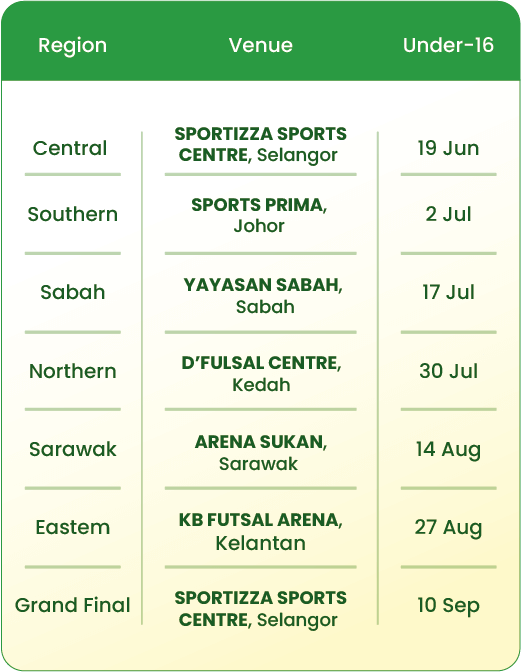 The top 32 teams in the U12 and U16 categories respectively from the preliminary round will move on to the grand finale in Kuala Lumpur.
