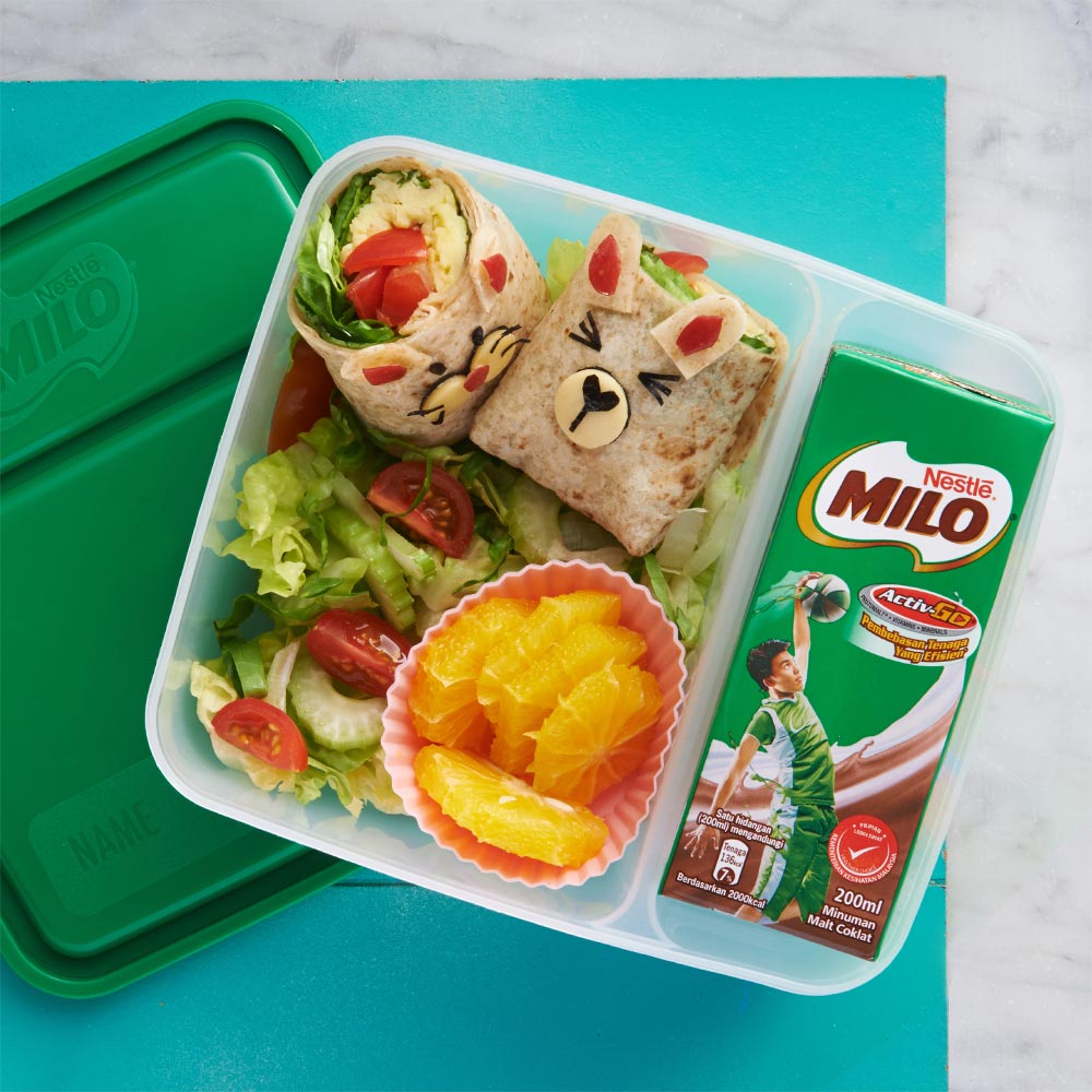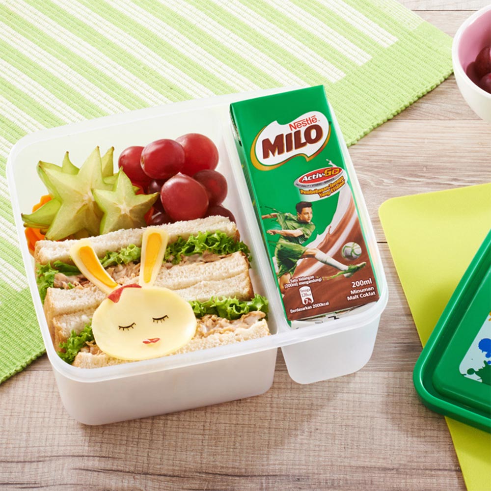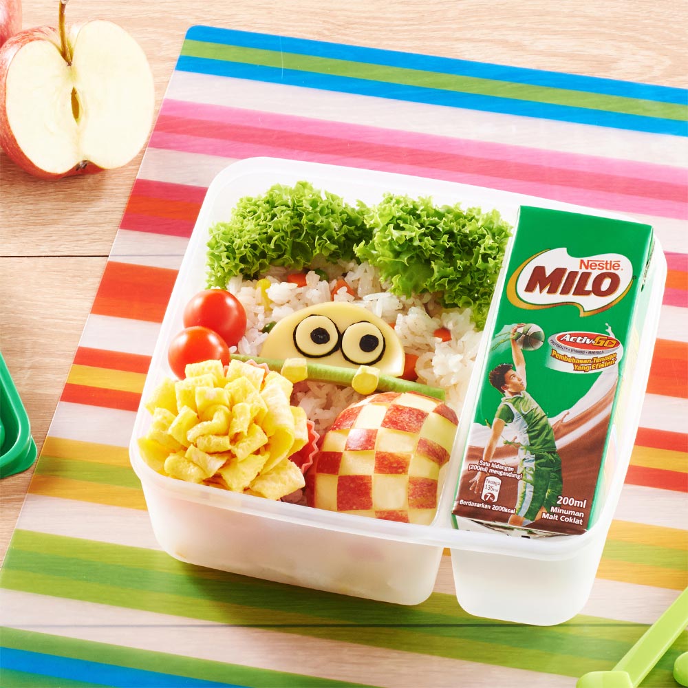 Resipi MILO® Bento Box dihasilkan mengikut panduan hidangan Kementerian Kesihatan Malaysia (KKM) untuk menggalakkan tabiat pemakanan yang sihat. Konsep #sukusukuseparuh digunapakai dalam setiap resipi Bento Box untuk membantu membekalkan nutrien dan tenaga buat anak anda memulakan harinya.