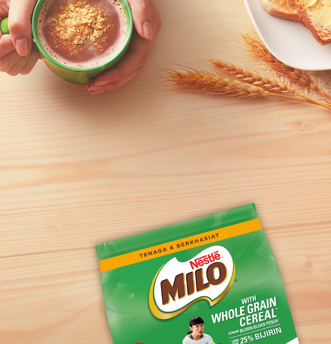 MILO® with Whole Grain Cereal is formulated for those who are looking for a nutritious drink to fill their tummy during the day.