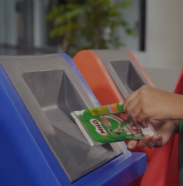 MILO® UHT drink packs are made up of 75% paper, 20% plastic, and 5% aluminum. All these materials are 100% recyclable. The drink packs will be sent to the SHA Paper Mill where they go through the hydra-pulping process to extract fibre for paper making and the PolyAl component will be sent to KPT Recycle Sdn Bhd to be processed into panel boards and roofing tiles.